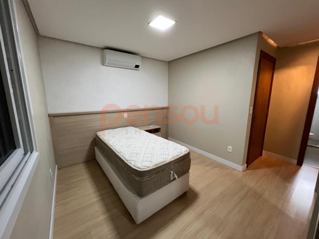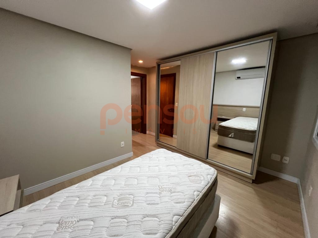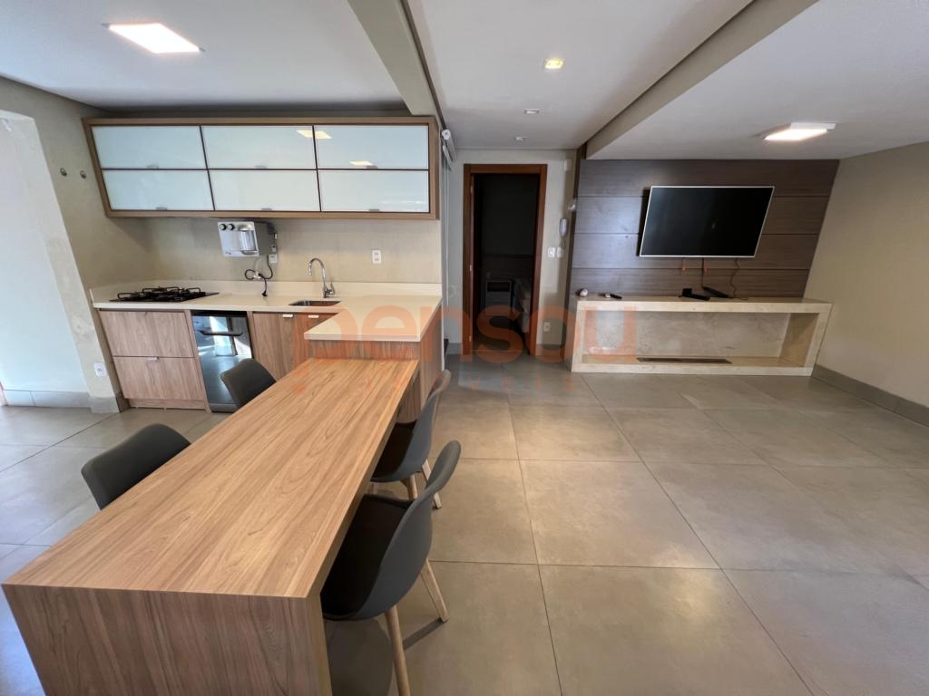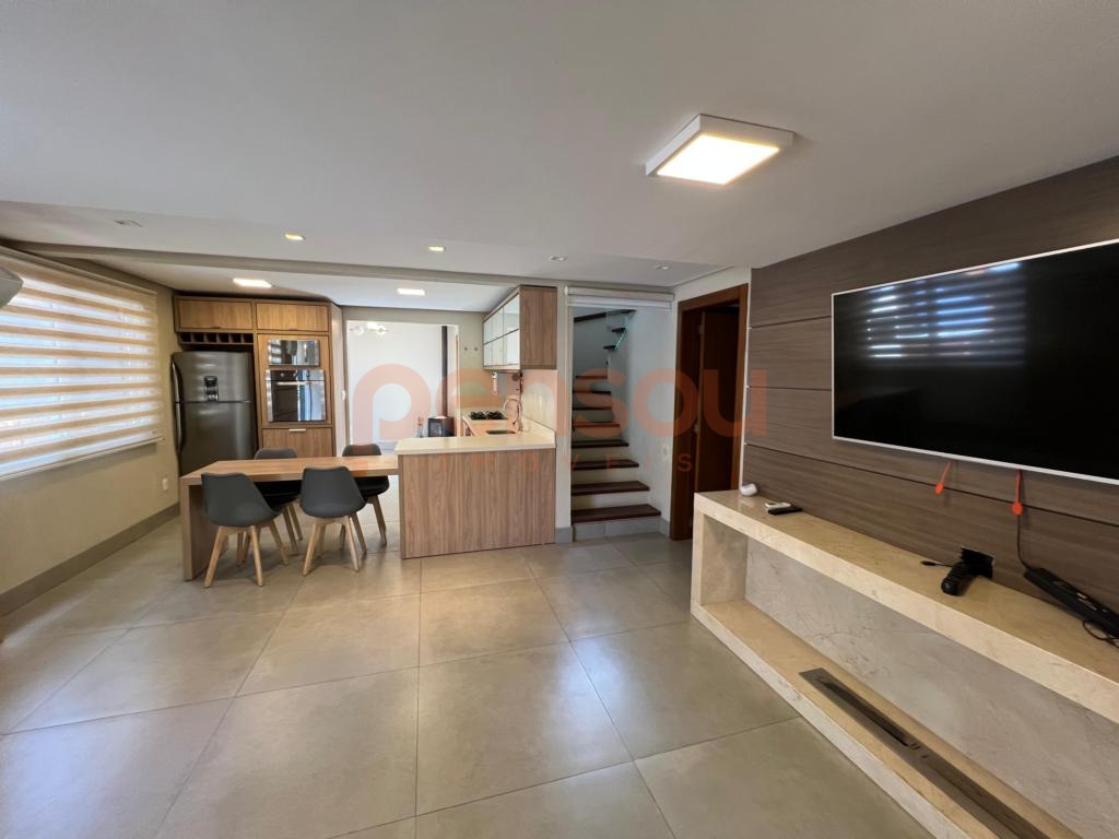 Ambientes integrados, sala de estar com lareira em mármore, jantar com calefator a lenha e cozinha equipada com eletrodomésticos de qualidade. Área gourmet com churrasqueira e mesa para oito lugares, além de pátio privativo de 40,50m² ideal para momentos em família.