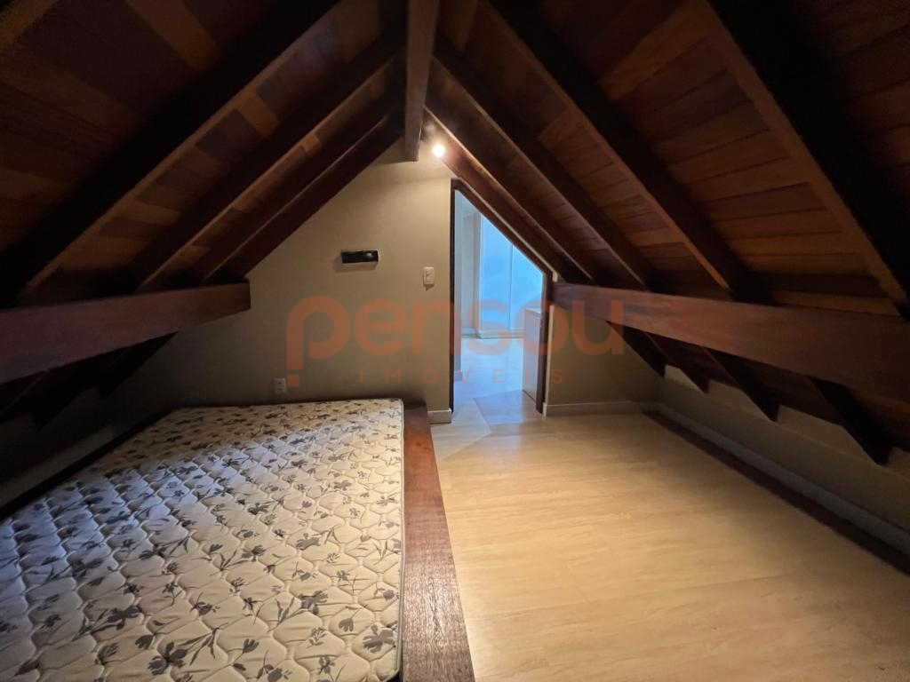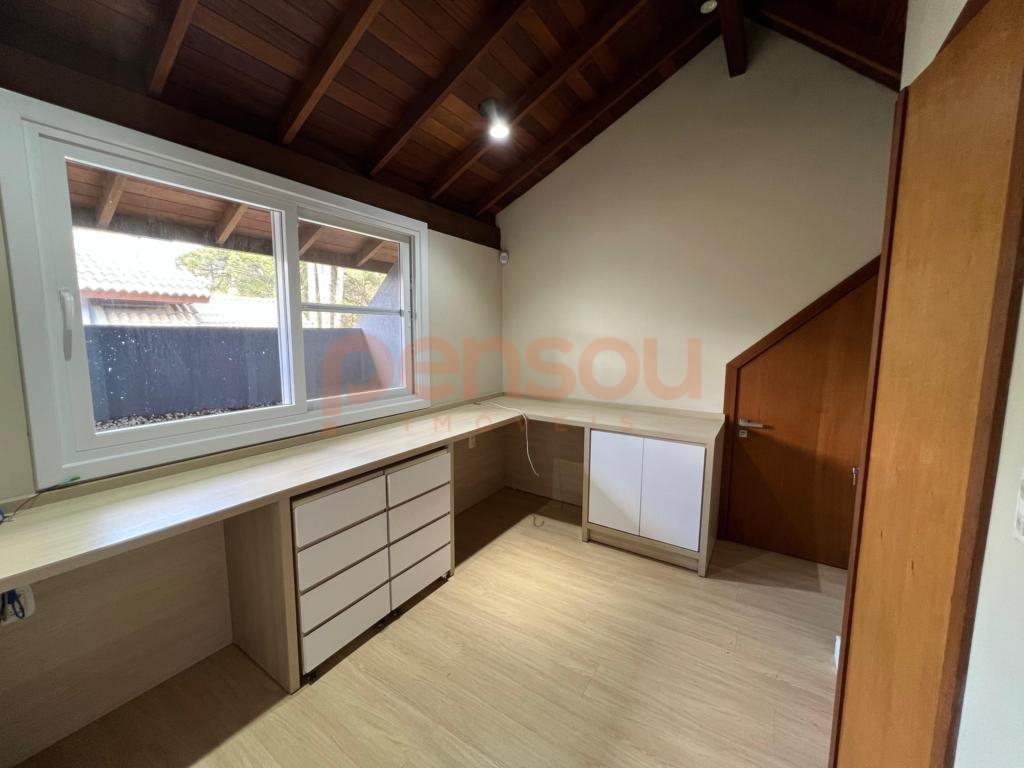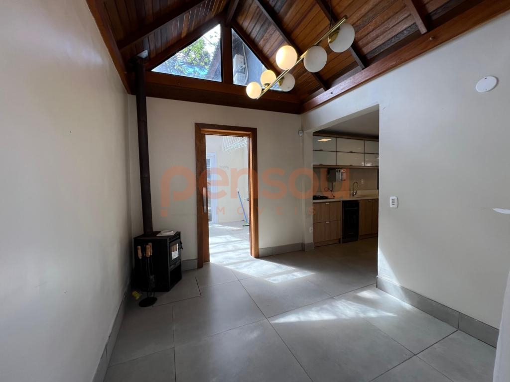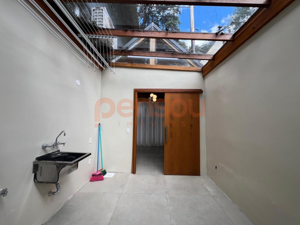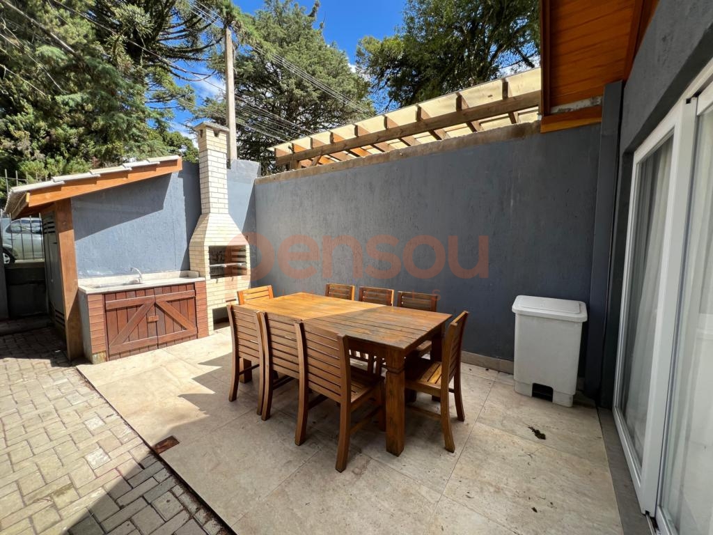 Casa geminada em condomínio fechado na charmosa Vila Suzana, em Canela. São 147,84m² privativos, além de um pátio com 90m², distruibuídos em três suítes (uma térrea e outra com varanda espaçosa). Conta ainda com sótão versátil, atualmente utilizado como escritório e sala de cinema.