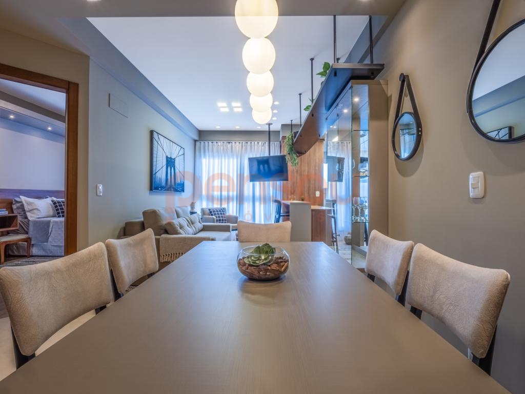 Apartamento composto po 02 dormitórios sendo 01 suíte, banheiro social, living 02 ambientes, cozinha com churrasqueira, área de serviço, espera para split, piso porcelanato nos banheiros, na cozinha e área de serviço, piso laminado no living e dormitórios, aberturas em PVC, 01 box de garagem e elevador.