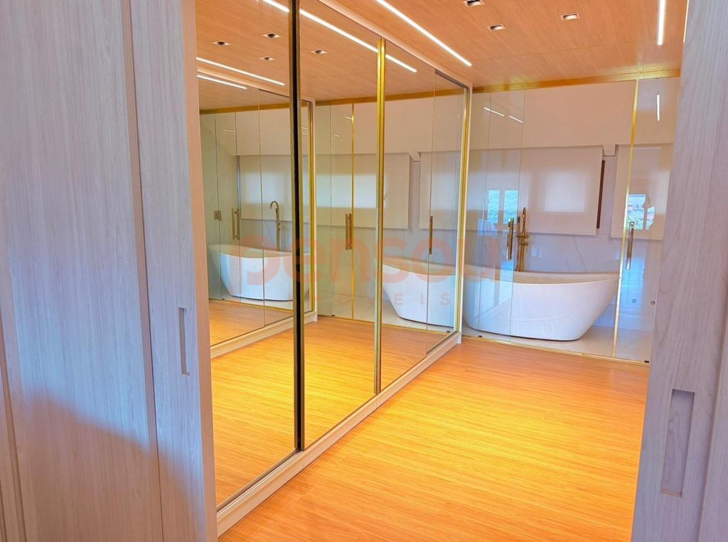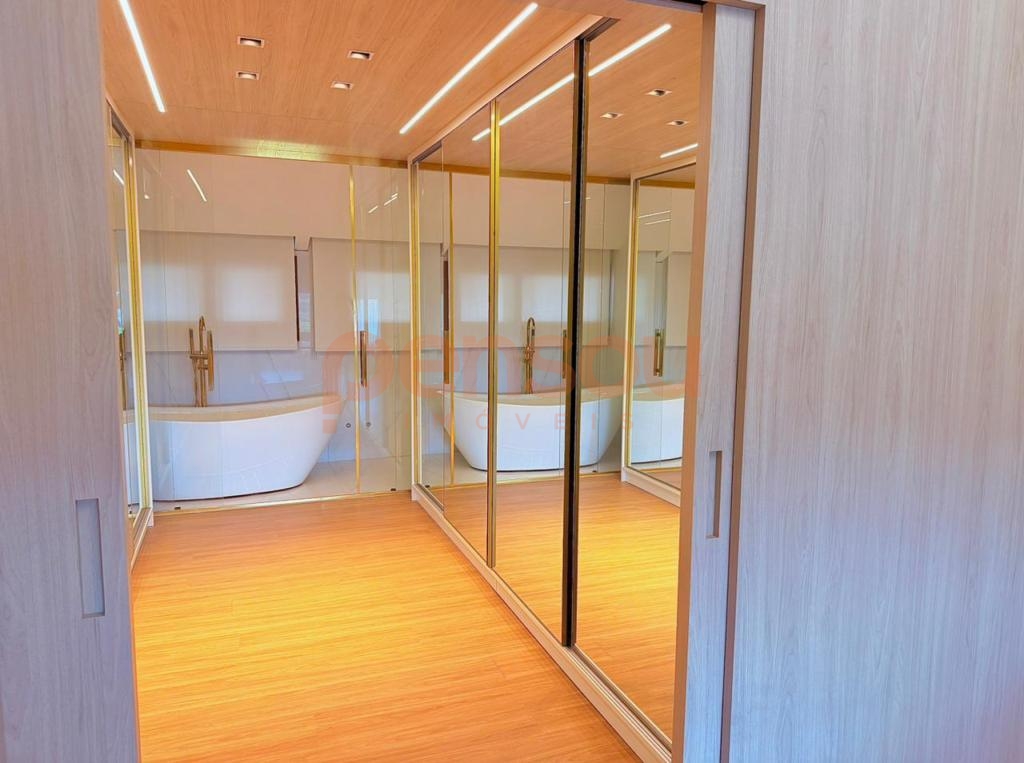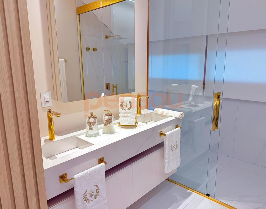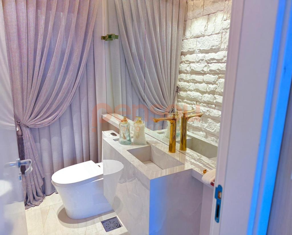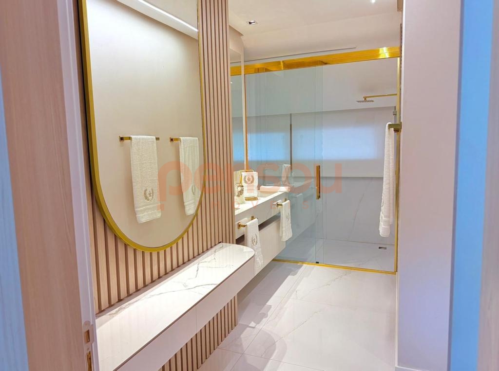 O imóvel conta com 4 suítes, sendo uma suíte master com closet e banheira de imersão, proporcionando um ambiente íntimo e elegante. Ao todo, são 5 banheiros com ducha, além de um lavabo, garantindo praticidade e conforto para toda a família e convidados.
