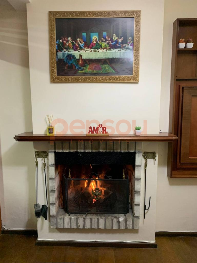 Sala de estar e jantar aconchegante, com lareira