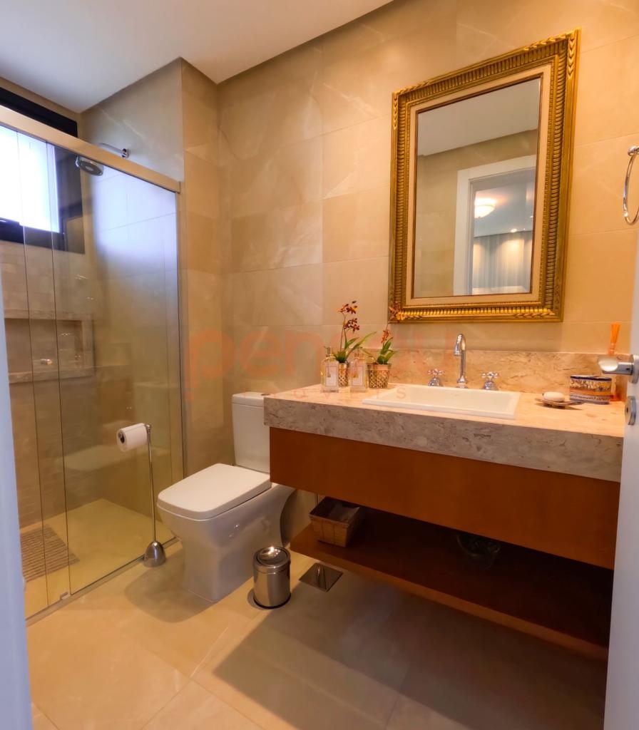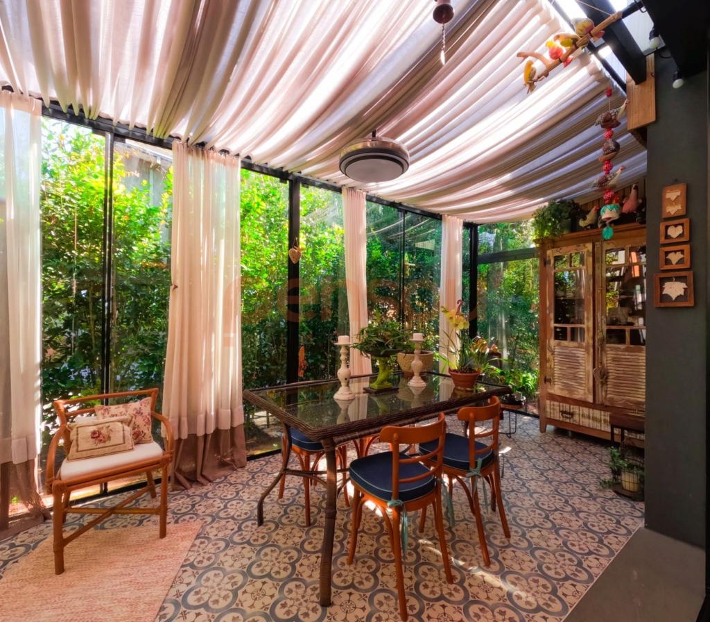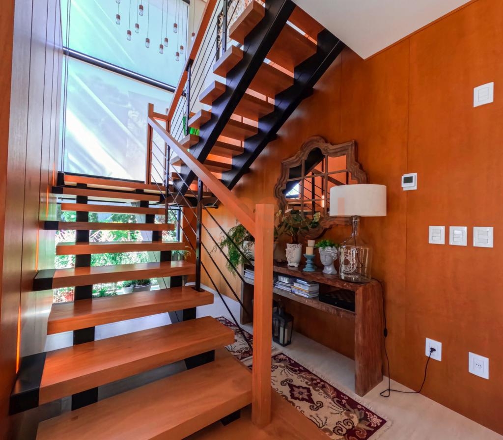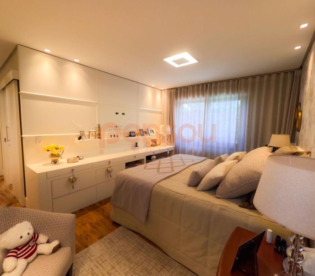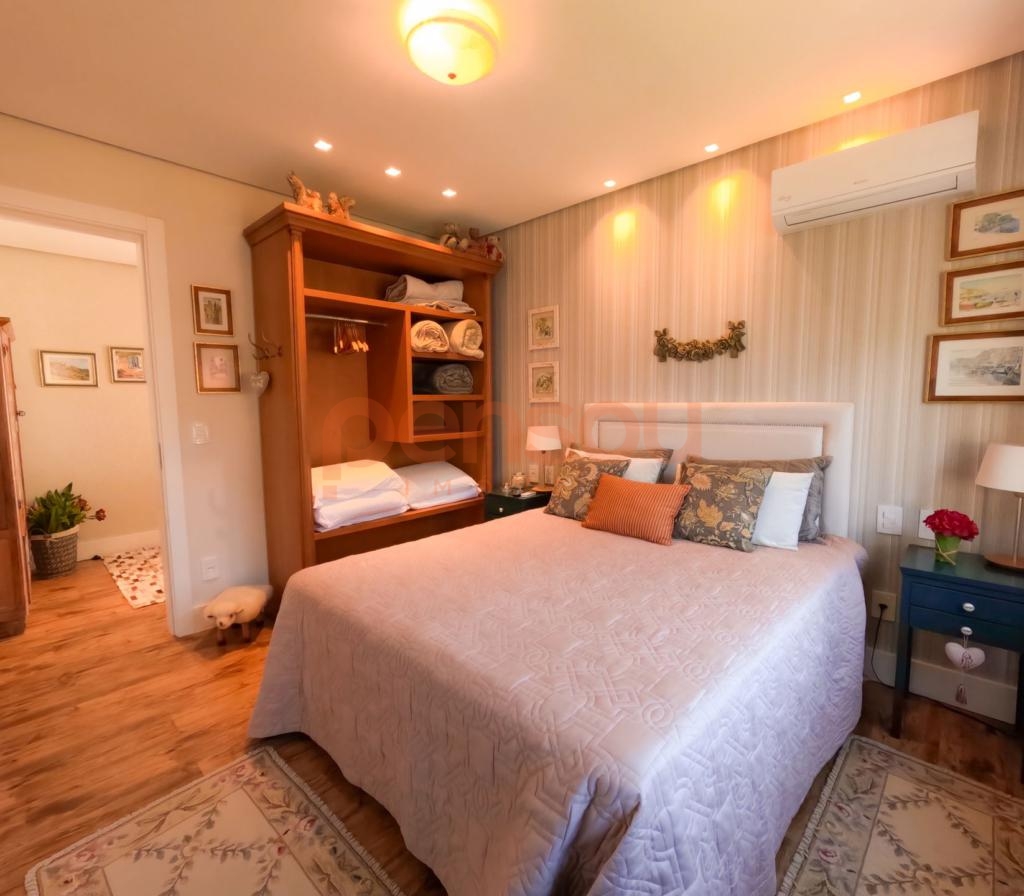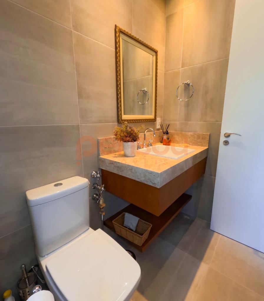 Excelente e ampla Casa com 300m² privativos, mobiliada, composto de 03 suítes, sendo 02 térreas e uma master, lavabo, cozinha com churrasqueira integrada com área social, solarium com vista para natureza, ampla sala de estar e jantar com lareira, e sacada com linda vista para área de lazer do condomínio, escritório e living íntimo piso superior.