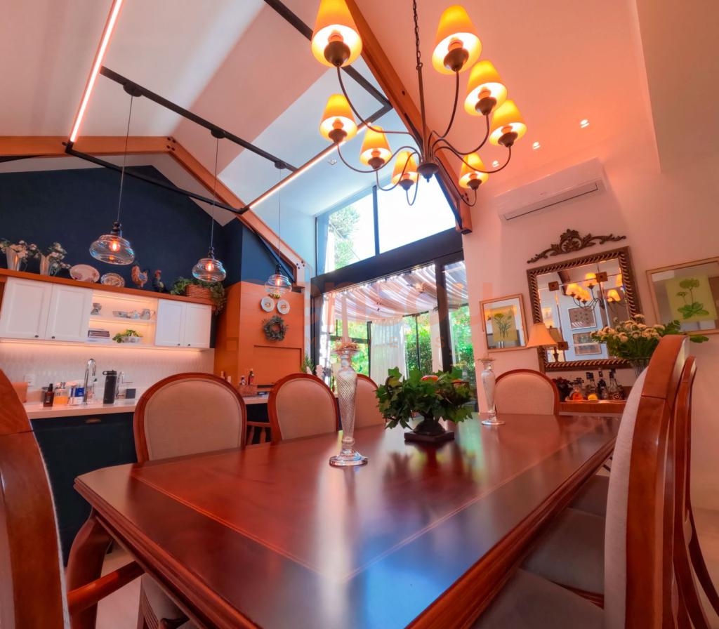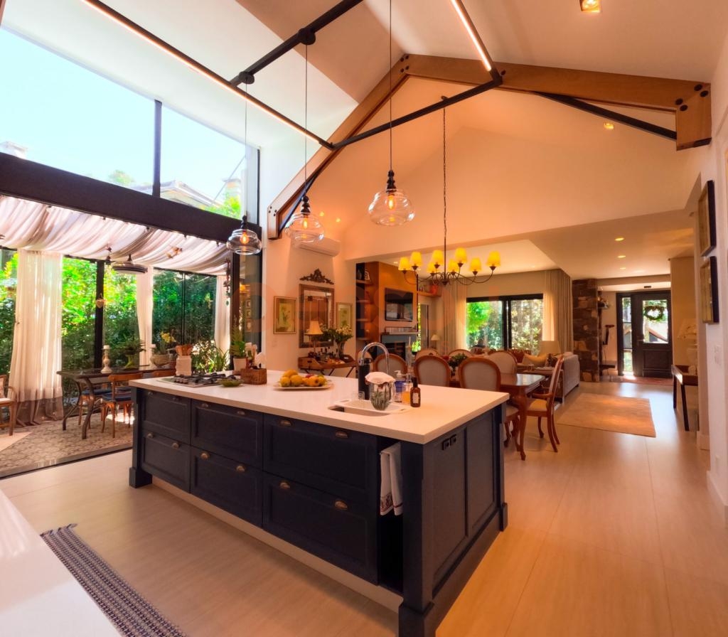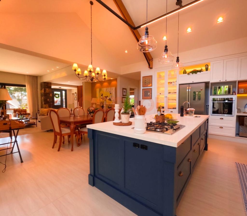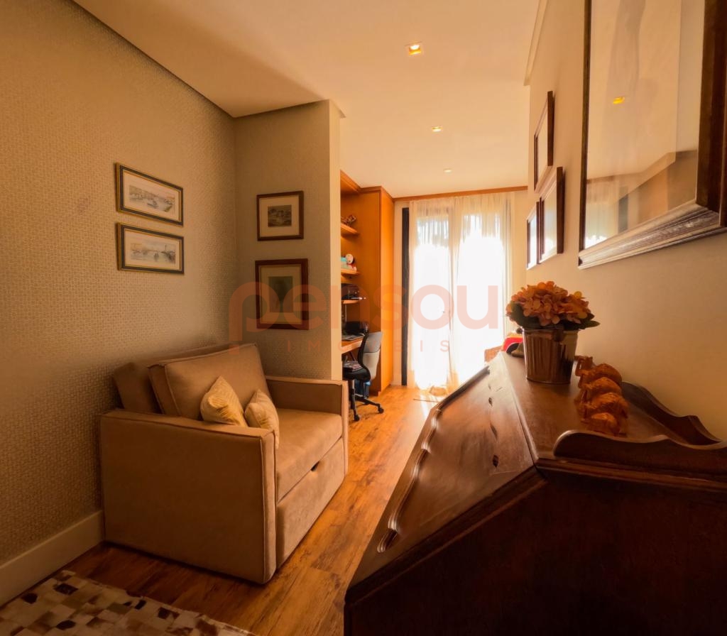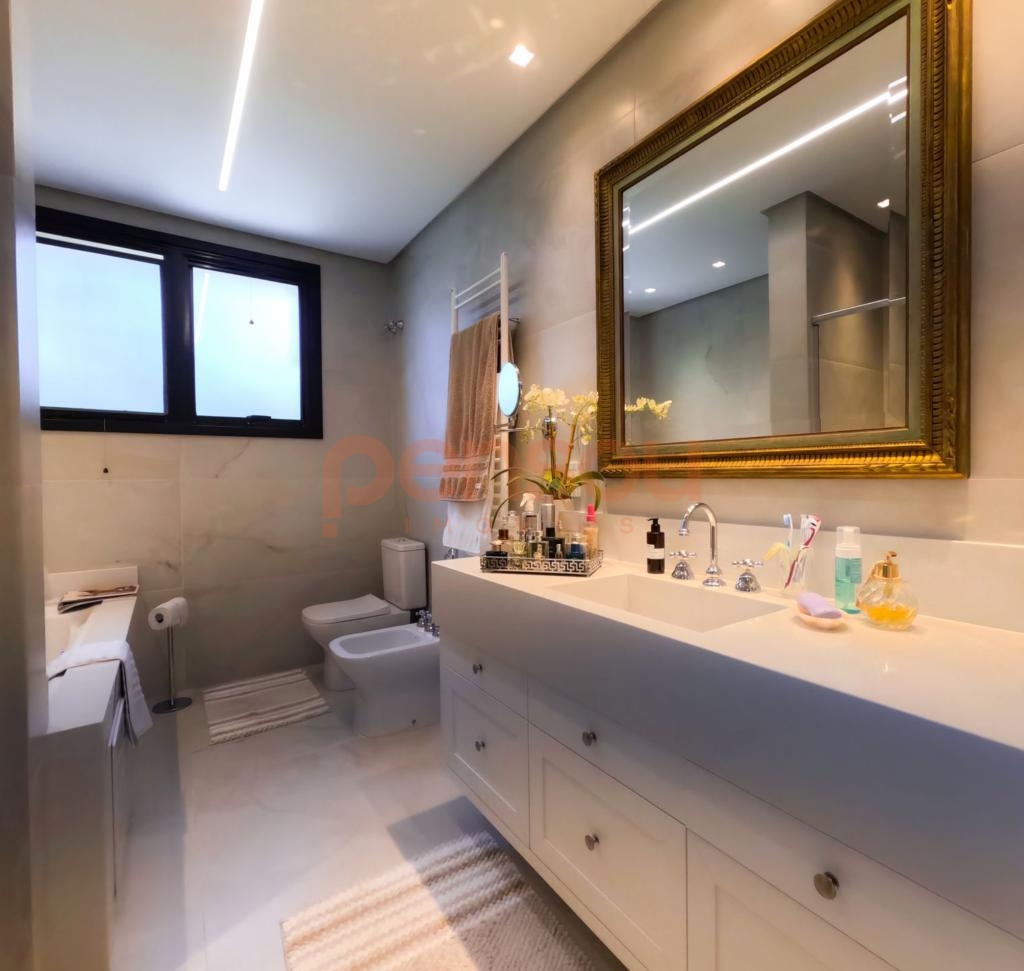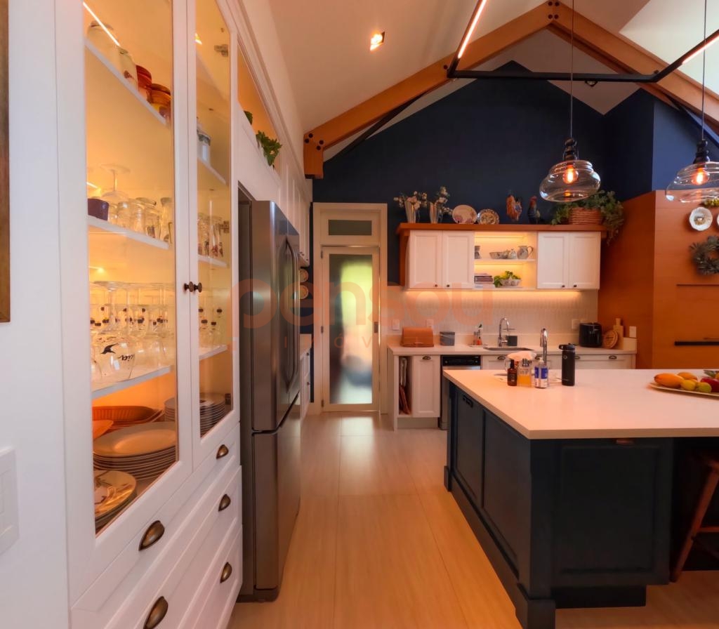 Excelente e ampla Casa com 300m² privativos, mobiliada, composto de 03 suítes, sendo 02 térreas e uma master, lavabo, cozinha com churrasqueira integrada com área social, solarium com vista para natureza, ampla sala de estar e jantar com lareira, e sacada com linda vista para área de lazer do condomínio, escritório e living íntimo piso superior.
