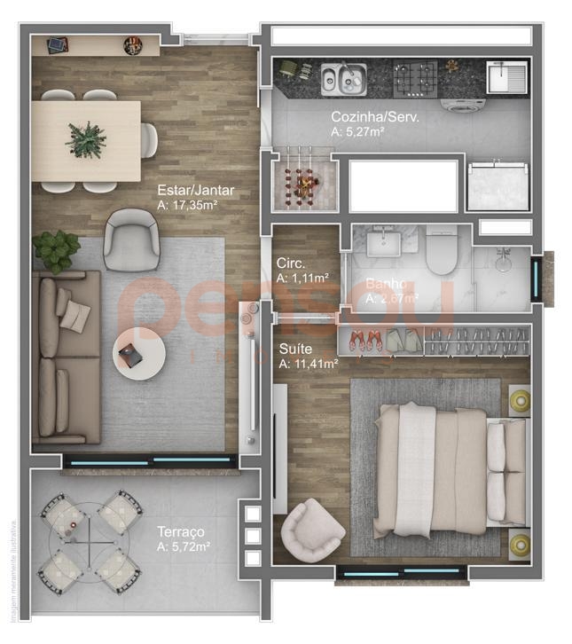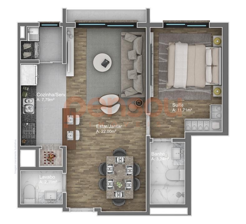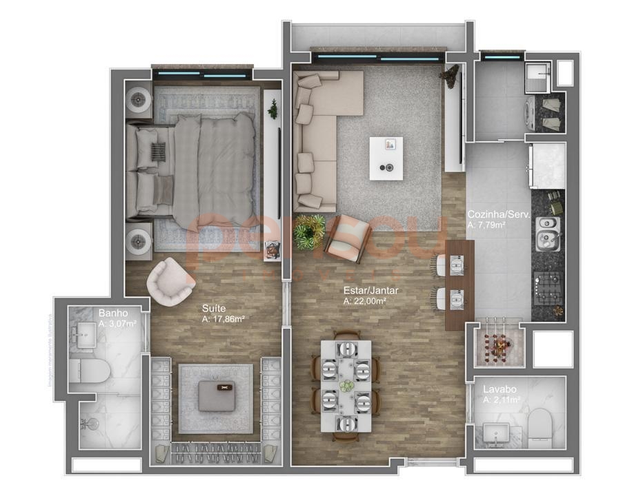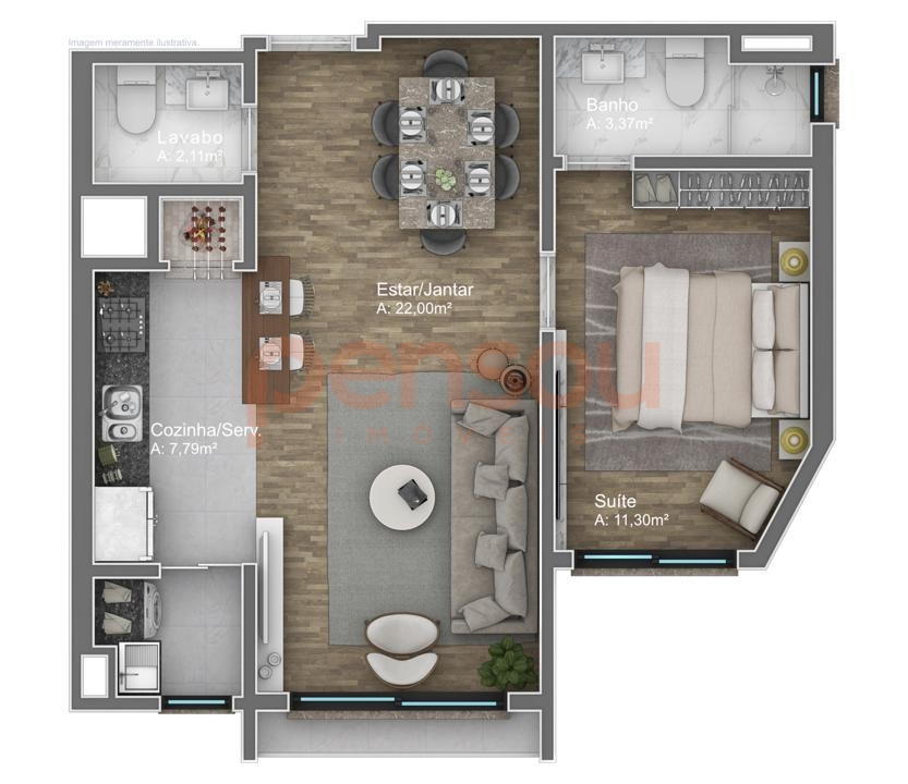 Elegante apartamento com 2 suítes, lavabo, cozinha com churrasqueira, lavanderia, sala de estar e jantar, piso flutuante no quarto e na sala e porcelanato nas áreas úmidas, teto com rebaixo em gesso e ainda espera para split na sala e quarto. Uma vaga de garagem.
