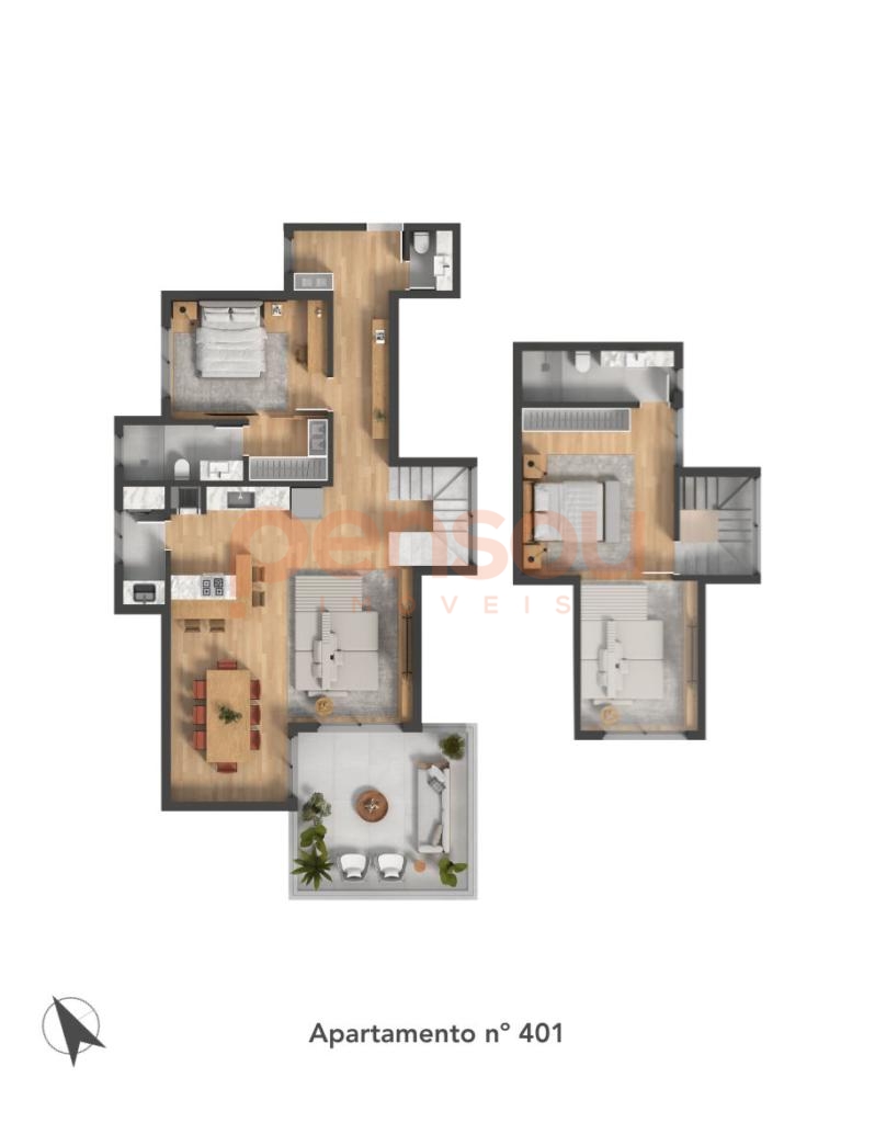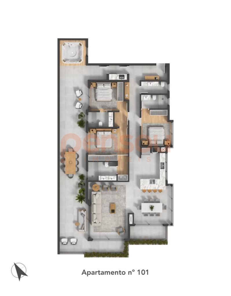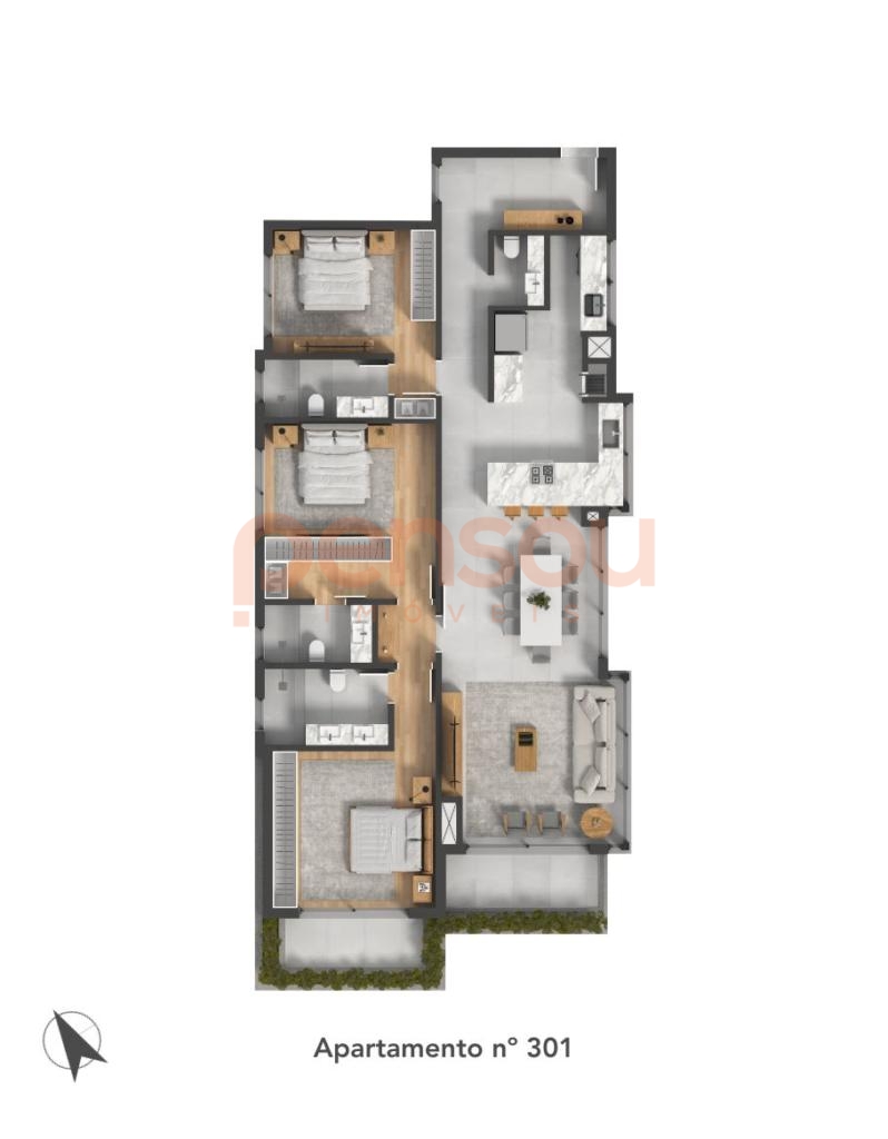 Apartamento com três dormitórios, sendo três suítes, oferecendo uma luxuosa experiência de moradia no centro de Gramado.