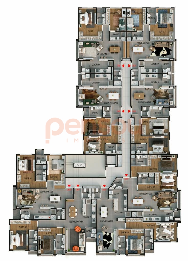 O imóvel possui dois dormitórios espaçosos, perfeitos para acomodar uma família ou hóspedes. Os acabamentos de alto padrão do edifício são evidentes em cada detalhe, desde os pisos elegantes até as instalações modernas. O prédio conta com elevadores silenciosos e uma estrutura arquitetônica contemporânea.