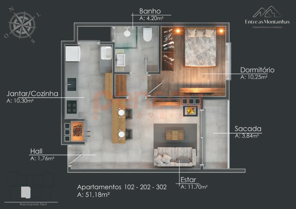 Este aconchegante apartamento oferece um dormitório espaçoso, ideal para quem busca praticidade sem abrir mão do conforto. Com acabamentos de alto padrão, cada detalhe do imóvel foi pensado para proporcionar bem-estar, desde os pisos elegantes até as instalações modernas, em um edifício com arquitetura contemporânea e charmosa.