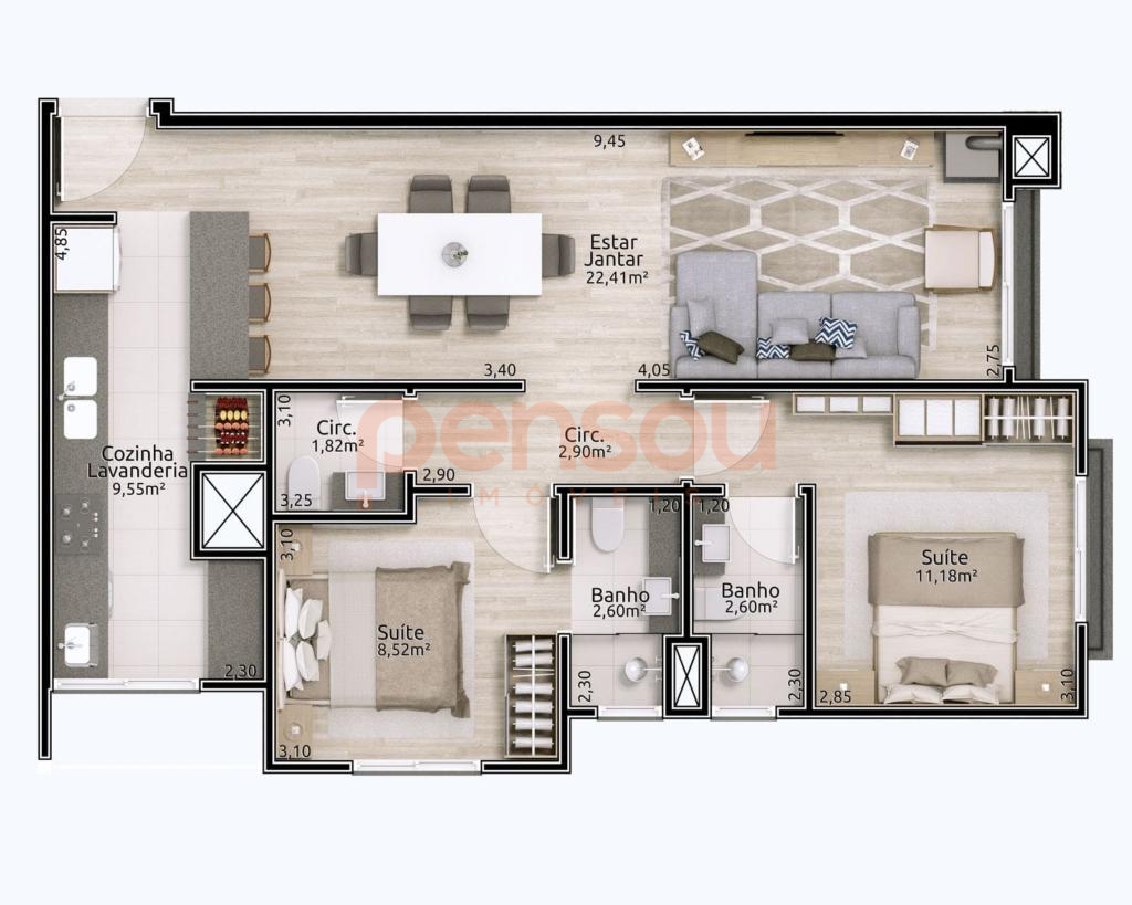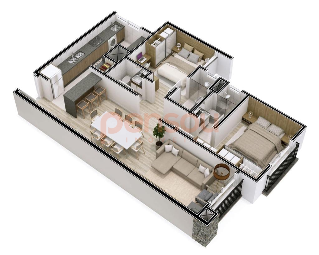 Apartamento com dois dormitórios, sendo duas suítes, oferecendo uma luxuosa experiência de moradia próximo ao centro de Gramado.