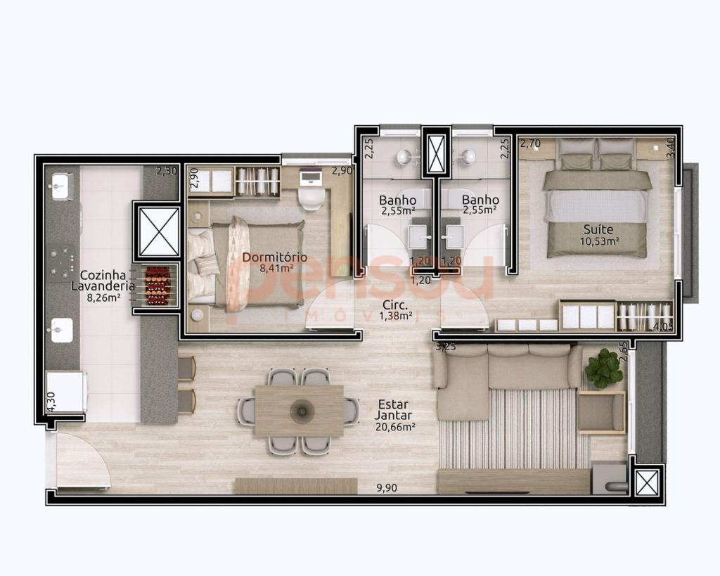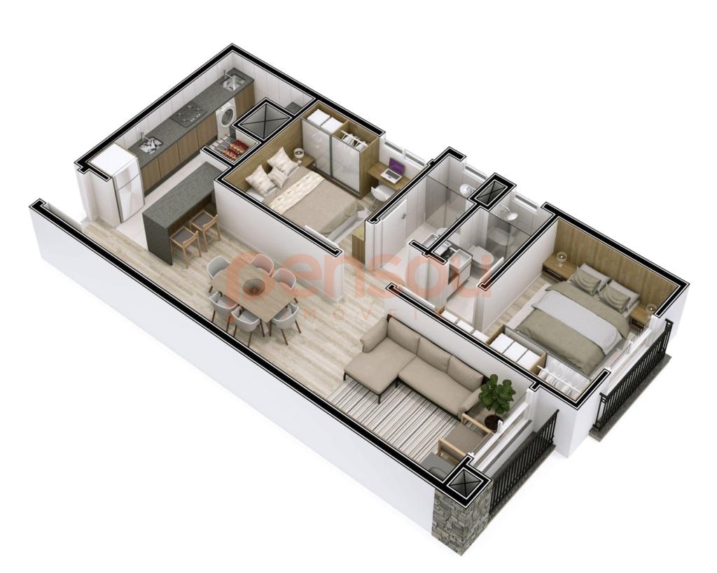 Apartamento com dois dormitórios, sendo uma suíte, oferecendo uma luxuosa experiência de moradia próximo ao centro de Gramado.