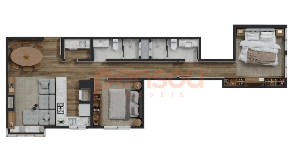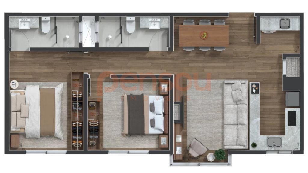 O imóvel possui dois dormitórios espaçosos, perfeitos para acomodar uma família e/ou hóspedes. Os acabamentos de alto padrão do edifício são evidentes em cada detalhe, desde os pisos elegantes até as instalações modernas. O prédio conta com elevadores silenciosos e uma estrutura arquitetônica contemporânea.