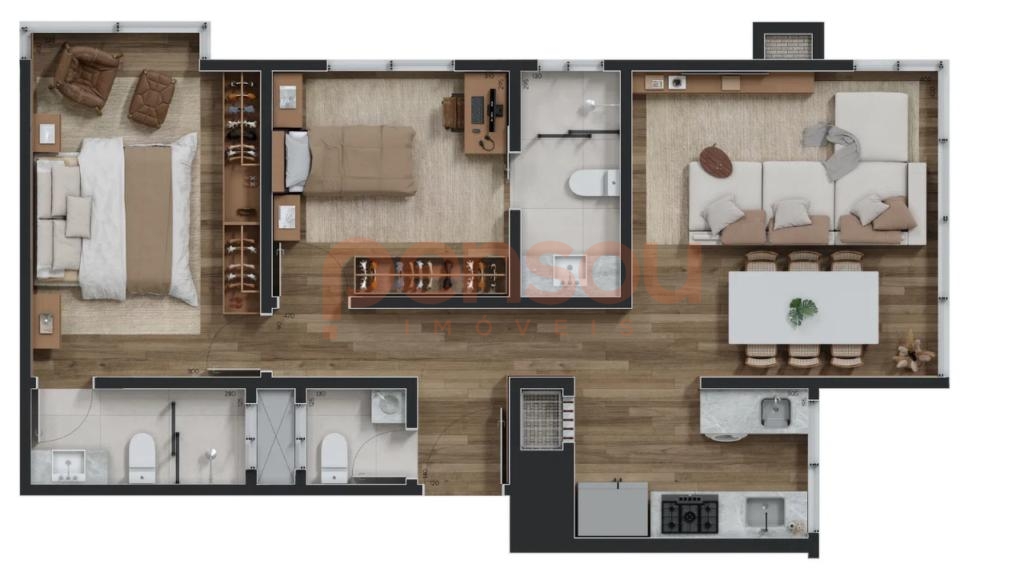 Apartamento com dois dormitórios, sendo uma suíte, oferecendo uma luxuosa experiência de moradia no centro de Canela.