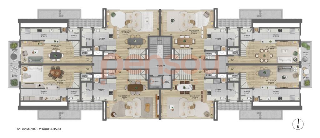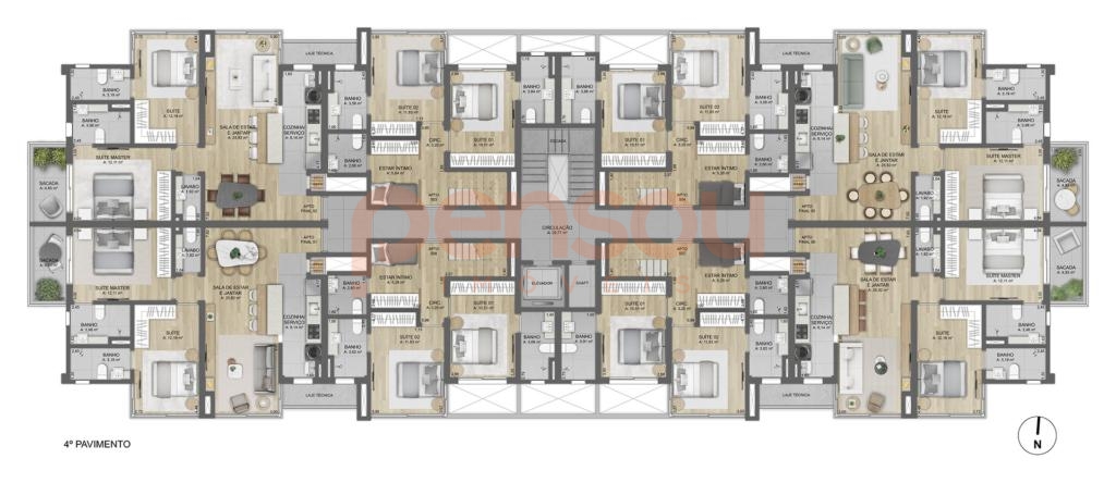 O padrão construtivo é impecável: espera para água quente e split, esquadrias em PVC com vidros duplos para isolamento termoacústico, piso laminado e cerâmico de alta qualidade e teto rebaixado em gesso, garantindo elegância e aconchego em cada detalhe.