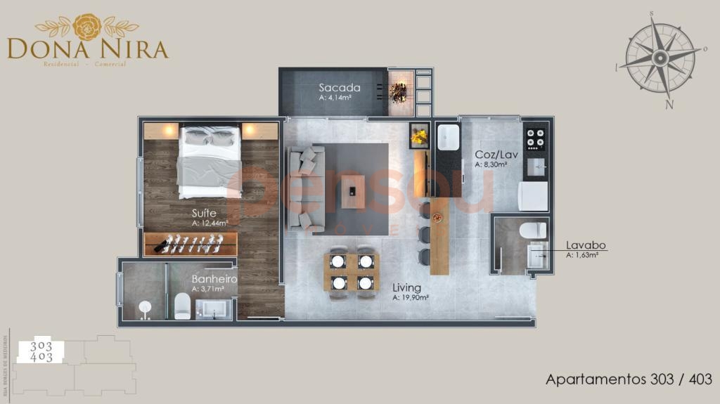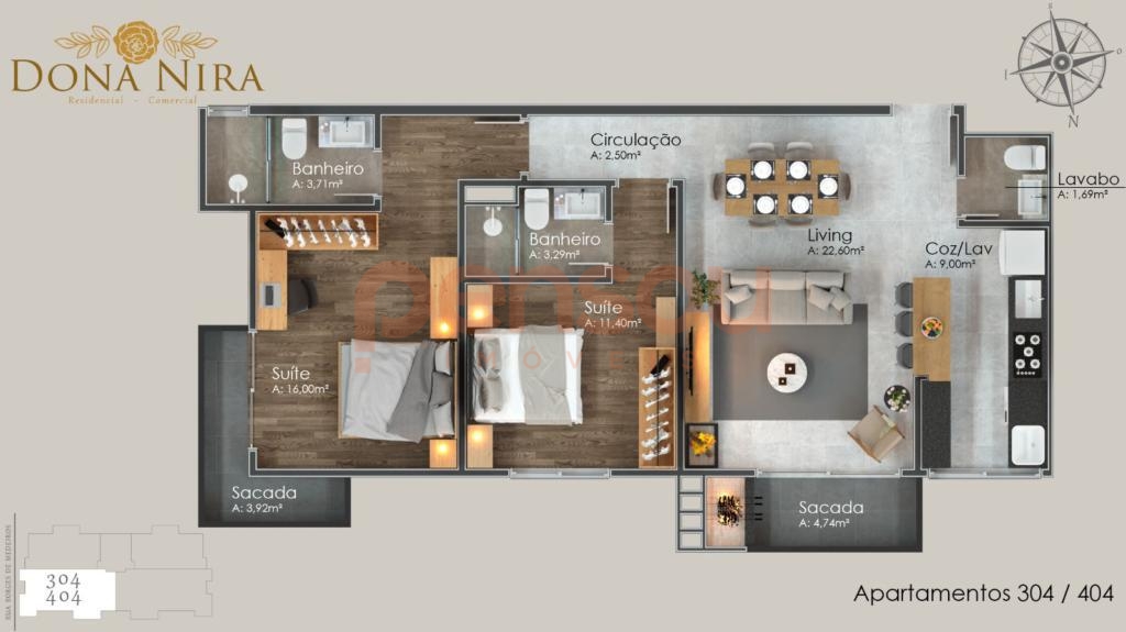 Apartamento com dois dormitórios, sendo duas suítes, oferecendo uma luxuosa experiência de moradia no centro de Canela.