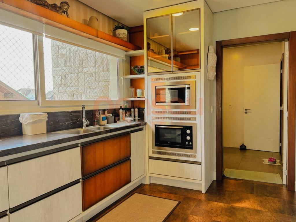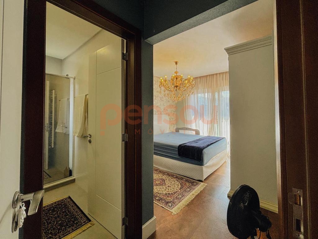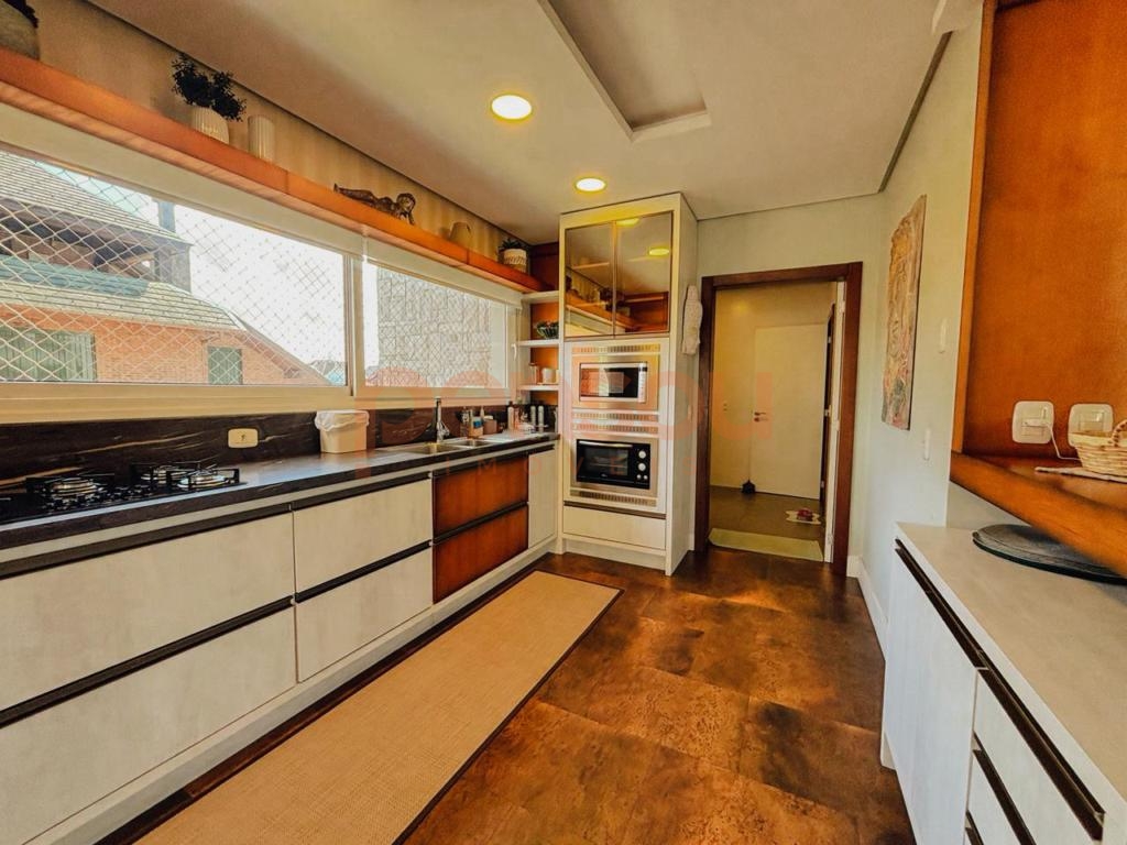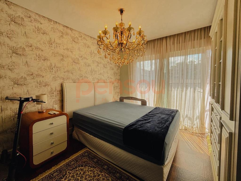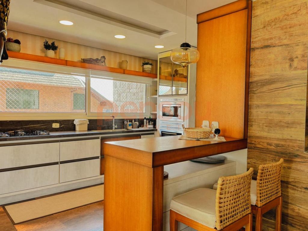 A cozinha é funcional e completa, acompanhando o mesmo padrão do imóvel, enquanto os dormitórios oferecem conforto e tranquilidade, com destaque para a suíte, que mantém o cuidado nos detalhes e no estilo clássico.