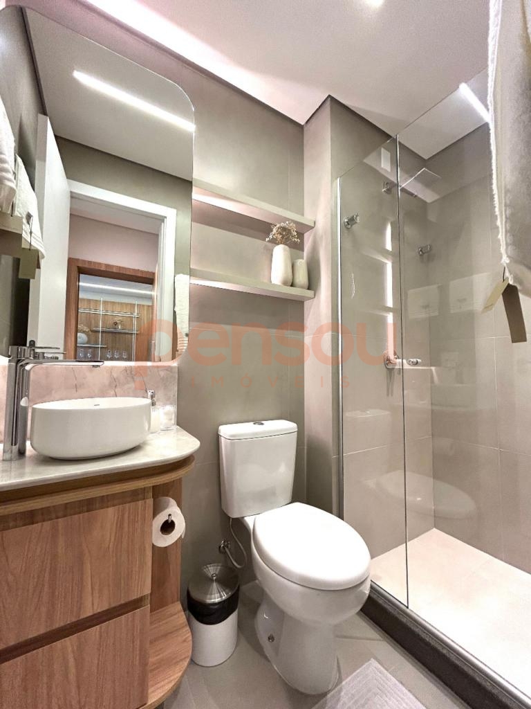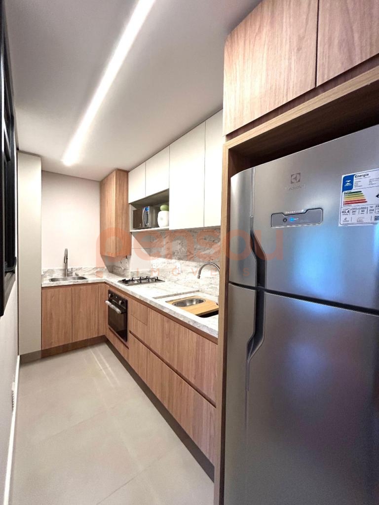 Imóvel novo nunca habitado, com planta bem distribuída possuindo cozinha com móveis fixos e churrasqueira, área de serviço, banho social, living conceito aberto integrando sala de jantar e estar equipado com lareira e sacada balcão lateral, 1 vaga de garagem.