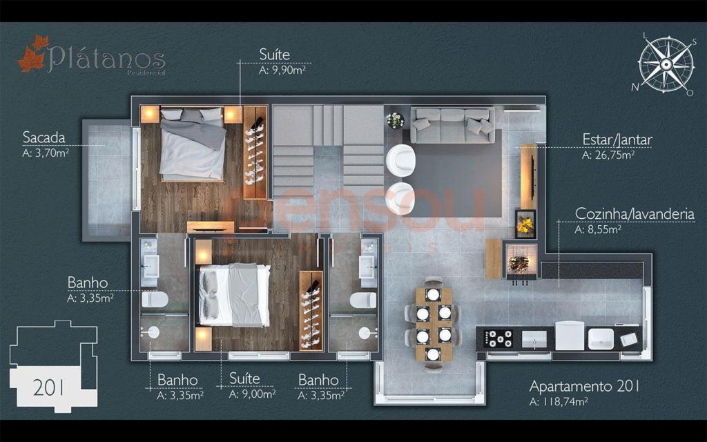 Apartamento Duplex com 3 suítes em Canela.