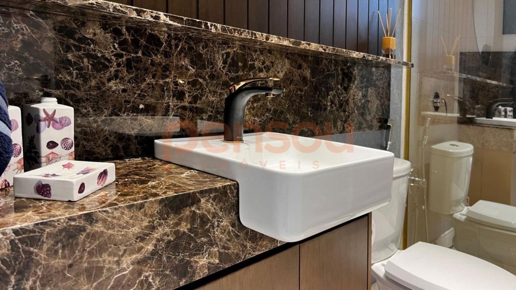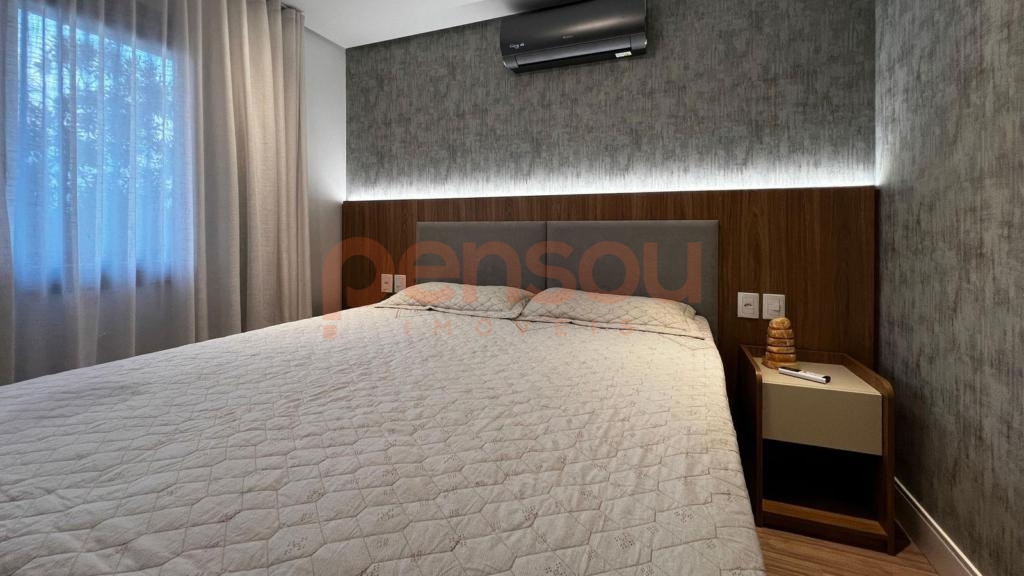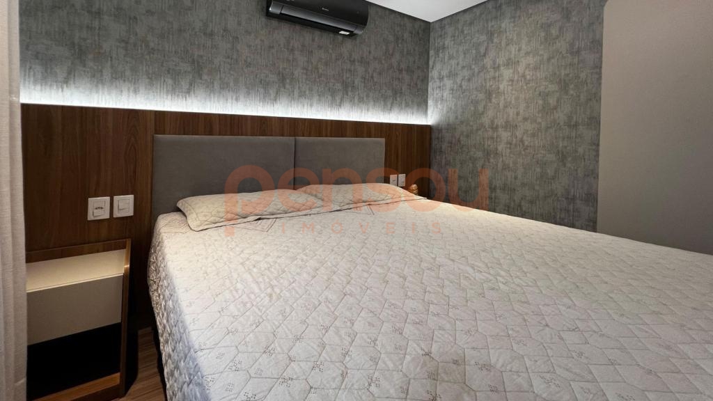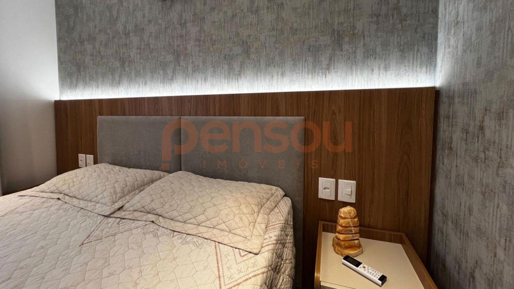 está mobiliado e possui acamentos de alto padrão de qualidade, ambientes integrados e ainda duas vagas de garagem.