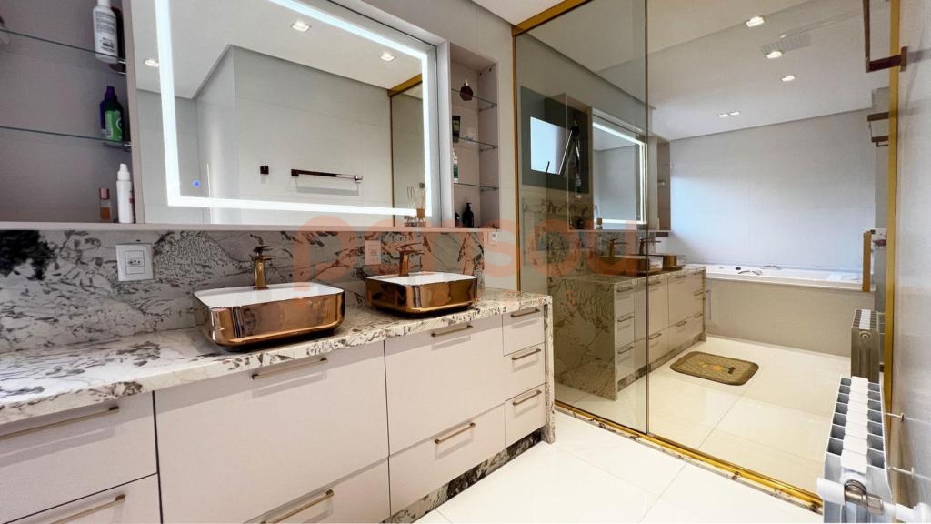 Belíssimo apartamento duplex de Alto Padrão com 3 suítes, uma delas com hidromassagem, pía dupla e gabinete que pode ser convertido em um closet, sala de estar com lareira, sala de jantar, cozinha americana com churrasqueira e lavanderia. Este belíssimo e requintado apartamento