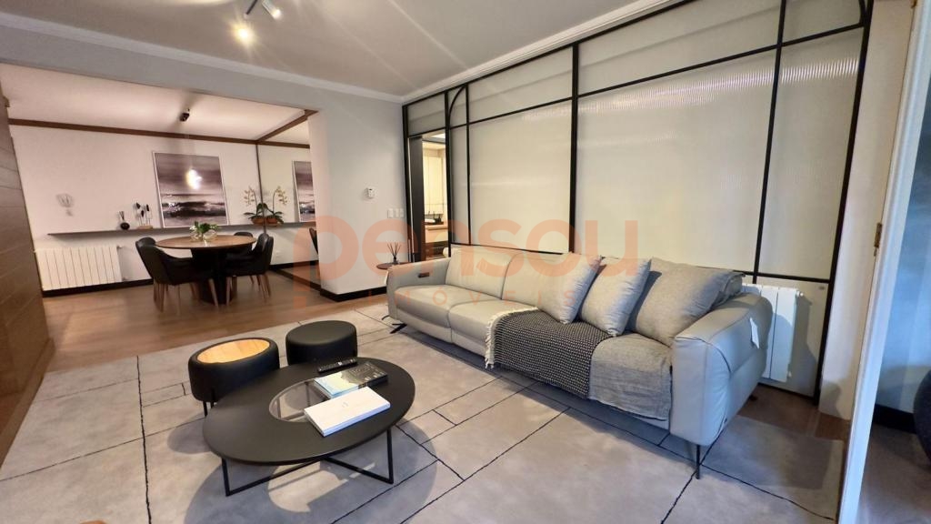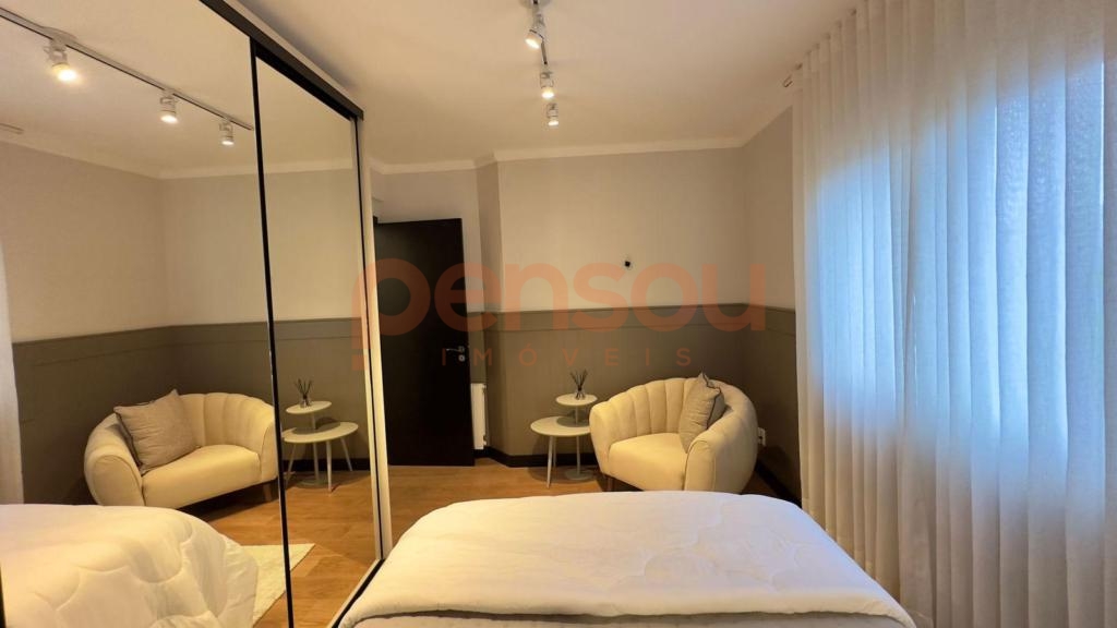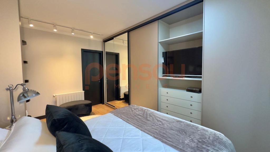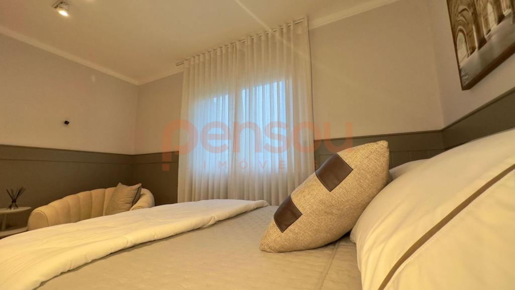 Com 3 dormitórios, sendo 1 suíte, o apartamento foi projetado para proporcionar conforto e funcionalidade. A sala de estar conta com um elegante sofá italiano Natuzzi, equipado com mecanismo de reclinação eletrônica no painel lateral que ajusta apoio de cabeça, lombar e pernas, garantindo máximo relaxamento nos três assentos. O móvel também dispõe de entrada USB integrada, unindo tecnologia e conveniência.