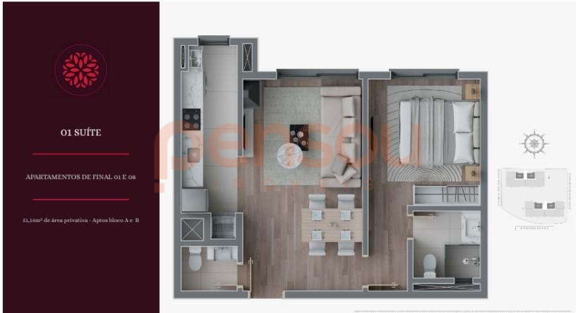 Excelente unidade de 01 dormitório, com posição solar privilegiada, banheiro social, sala de estar e jantar integradas, cozinha funcional e 01 vaga de garagem. O projeto valoriza a amplitude dos ambientes e o conforto no dia a dia, ideal tanto para morar quanto para investir.
