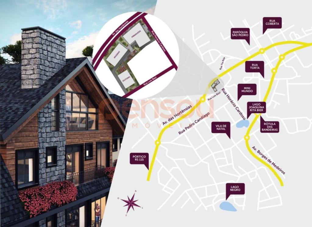 Com entrega prevista para dezembro de 2025, o condomínio está localizado em uma região tranquila e valorizada, a poucos minutos da Rua Coberta de Gramado.