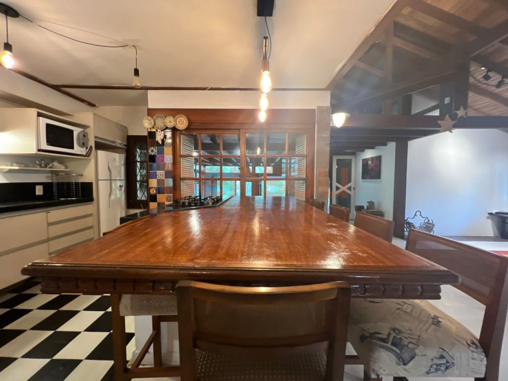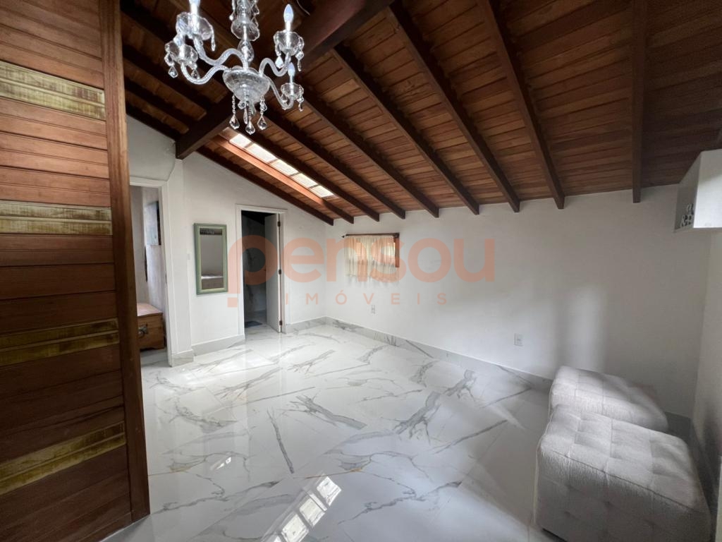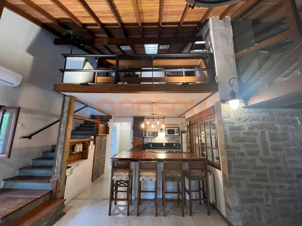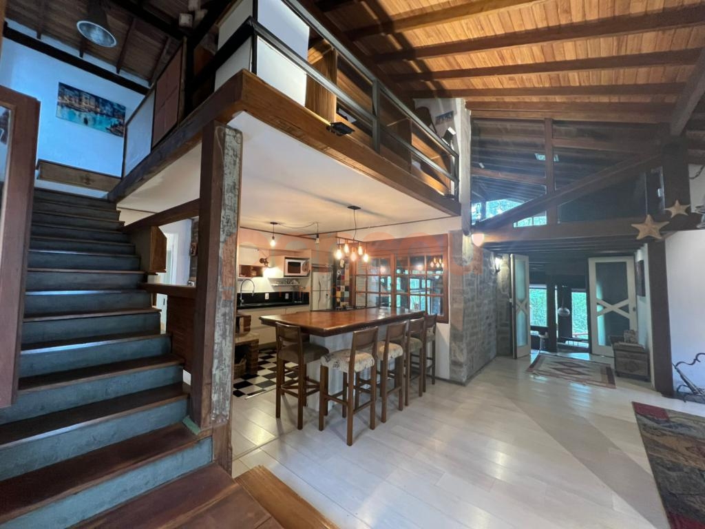 Com 3 dormitórios, sendo 2 suítes (uma delas no térreo), a casa encanta pela arquitetura mista que combina pedra aparente, madeira nobre e amplas aberturas em vidro, integrando perfeitamente os ambientes internos à paisagem natural.
