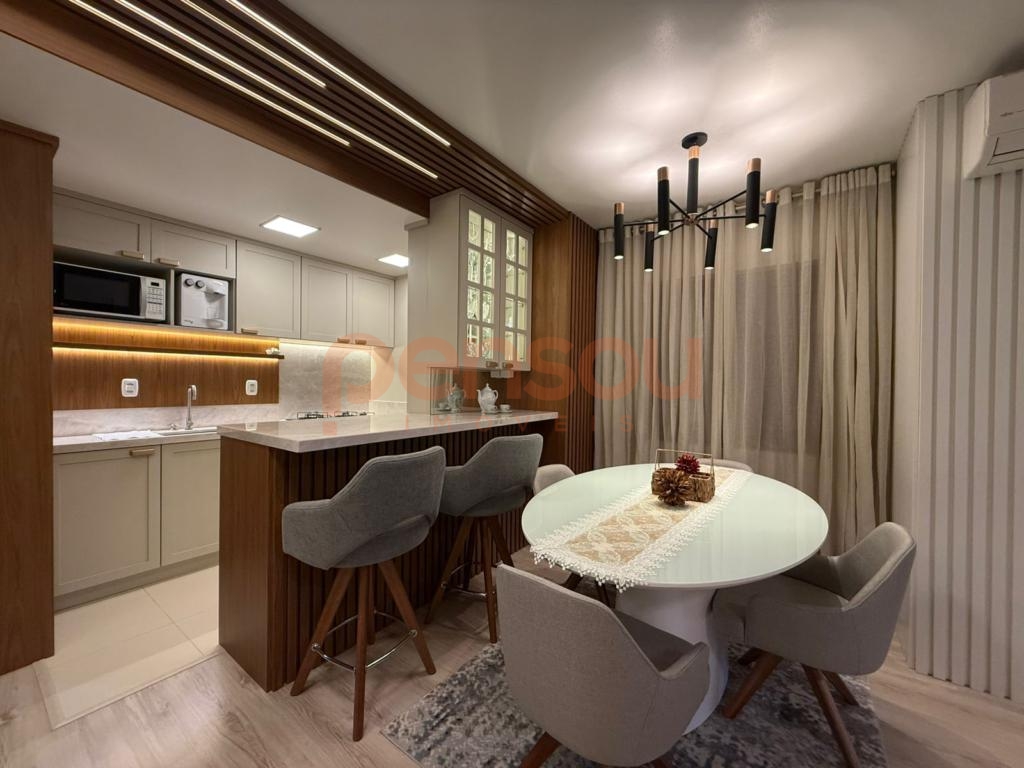 O imóvel conta com uma suíte aconchegante, sala de estar e jantar integradas, cozinha completa com eletrodomésticos, utensílios e móveis sob medida, além de aquecimento a gás e ótima iluminação natural.
