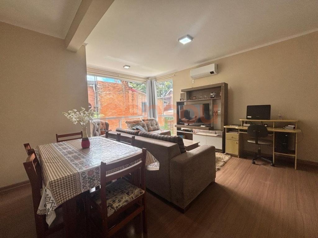 Com 258,98 m² de área construída distribuídos em dois pavimentos, o imóvel conta no pavimento térreo com dois dormitórios, sendo um deles suíte, banheiro social, ampla sala de estar com lareira, sala de jantar, cozinha espaçosa, área de serviço e garagem coberta com churrasqueira. A residência possui espera para água quente e para instalação de ar-condicionado tipo split.
