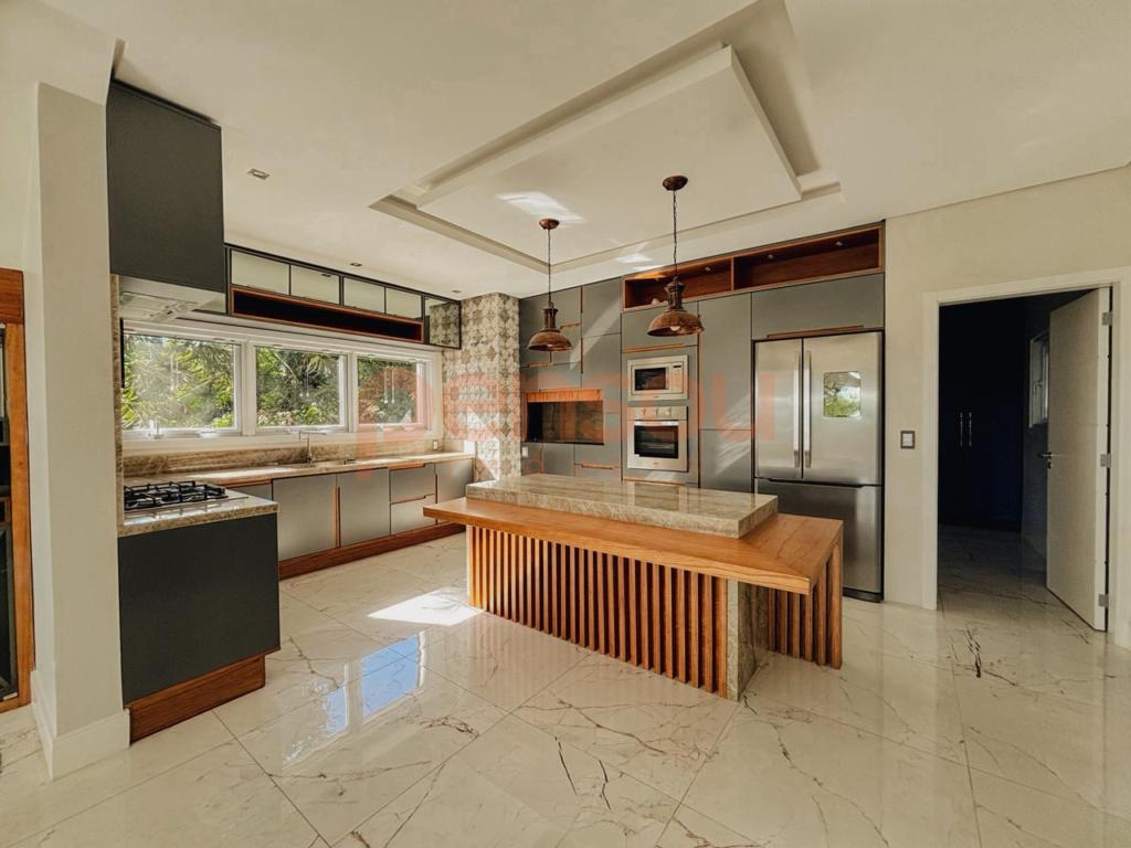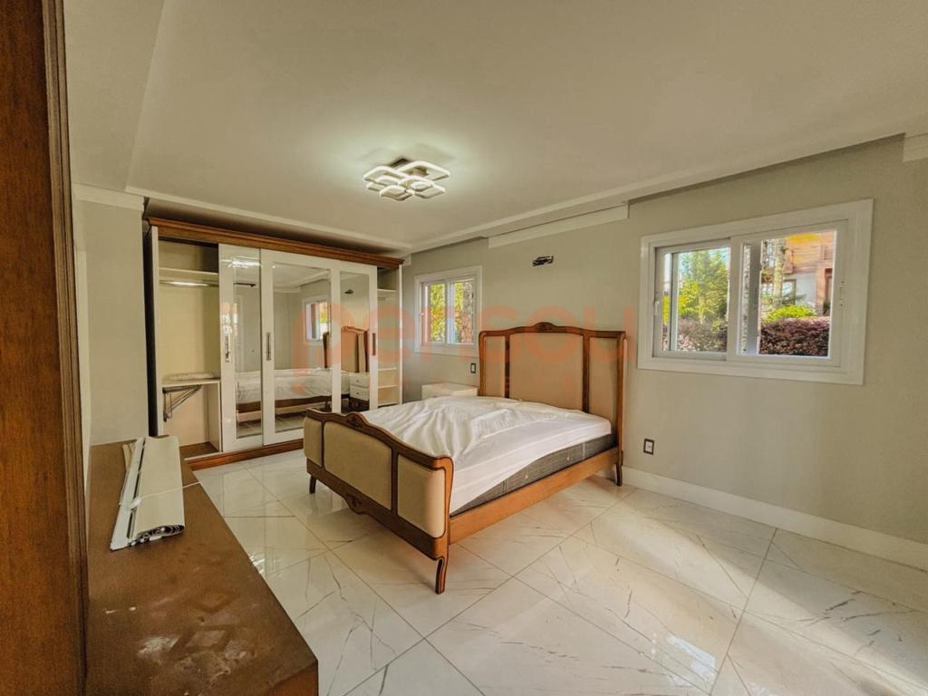 A residência conta com cinco suítes, sendo uma suíte de serviço, oferecendo total privacidade e comodidade para a família e convidados.