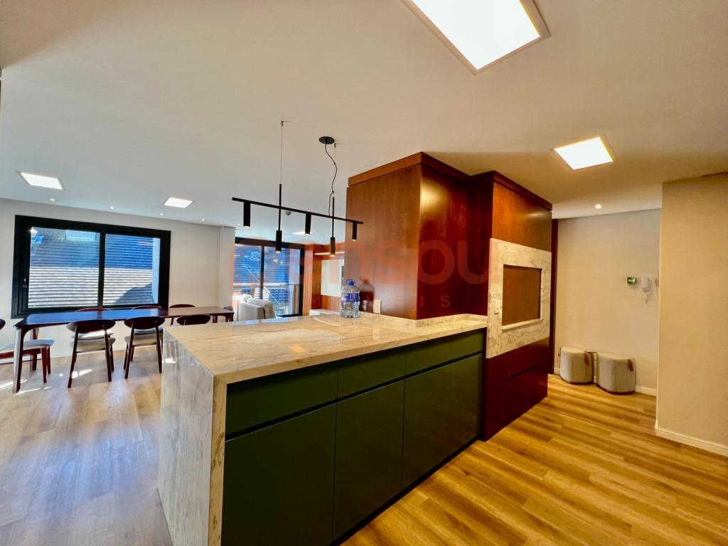 Belo e amplo apartamento com 2 suítes, lavabo, cozinha americana com churrasqueira e área de serviço, estar e jantar amplos.