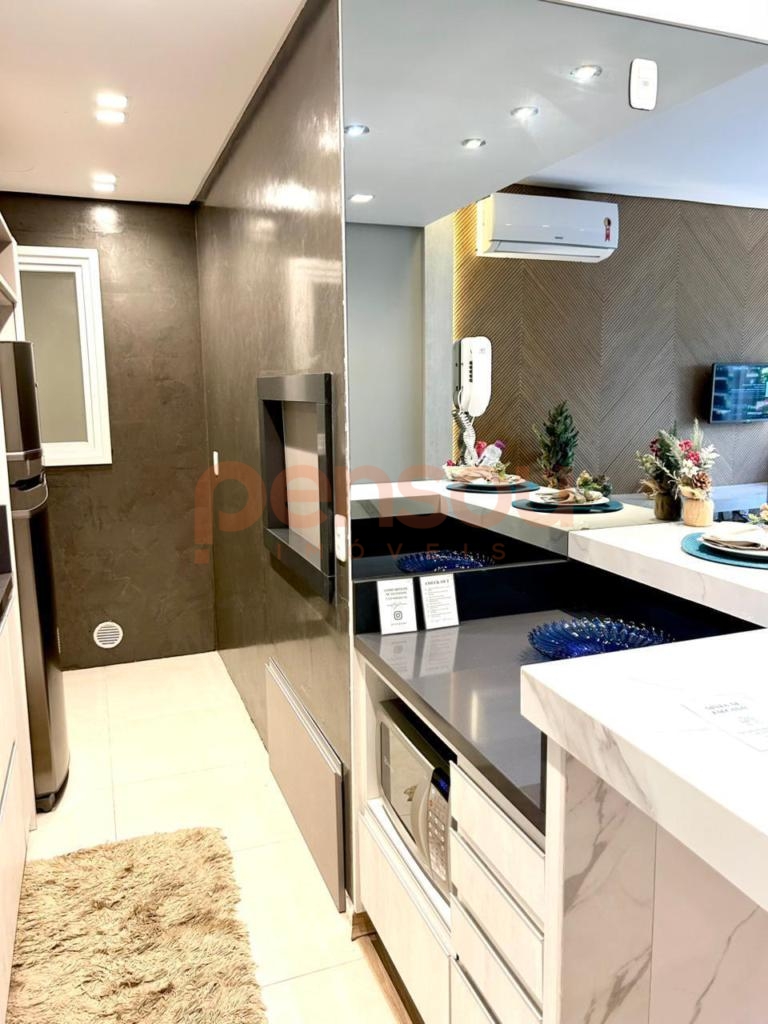 O imóvel conta com cozinha americana, lavabo, área de serviço, churrasqueira, sacada, suíte com closet, despensa e lareira. Possui acabamento em gesso, piso porcelanato, interfone, está mobiliado e dispõe de 01 vaga de garagem.