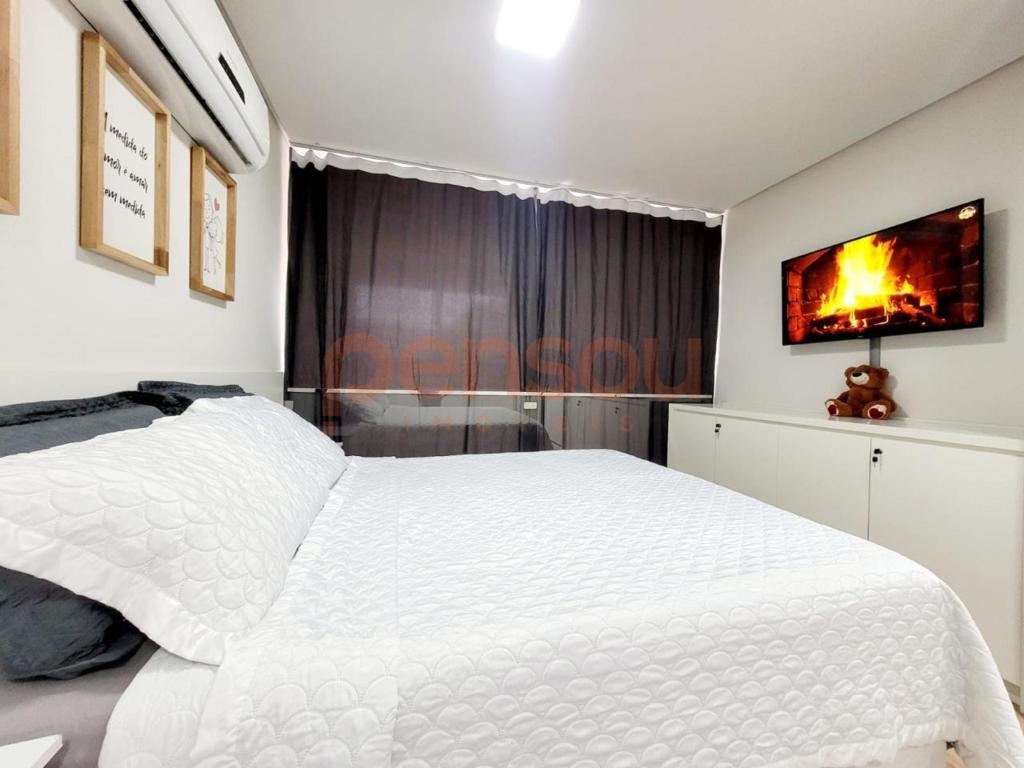 O imóvel conta com 1 suíte, lavabo, living integrado de estar e jantar, cozinha com churrasqueira e área de serviço. Possui também sacada e espera para lareira e ar-condicionado, proporcionando ambientes aconchegantes e funcionais para todas as estações do ano. Além disso, dispõe de vaga de garagem, oferecendo mais comodidade no dia a dia.