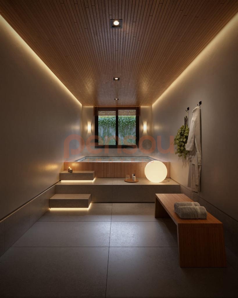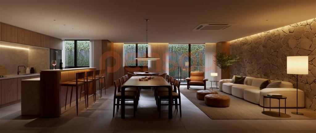 Apartamentos: Acabamento em gesso, Aquecimento a Gás, Área de Serviço, Banheiro Social, Churrasqueira, Cozinha, Espera para split, Fechadura com senha na porta de entrada, Gás Individual, Hidrômetro Individual, Infraestrutura para água quente, Lareira, Lavabo, Living, Mezanino, Piso aquecido nos banheiros, Porcelanato, Sacada, Sala de Estar, Sala de jantar, Varanda e Vista Panorâmica.