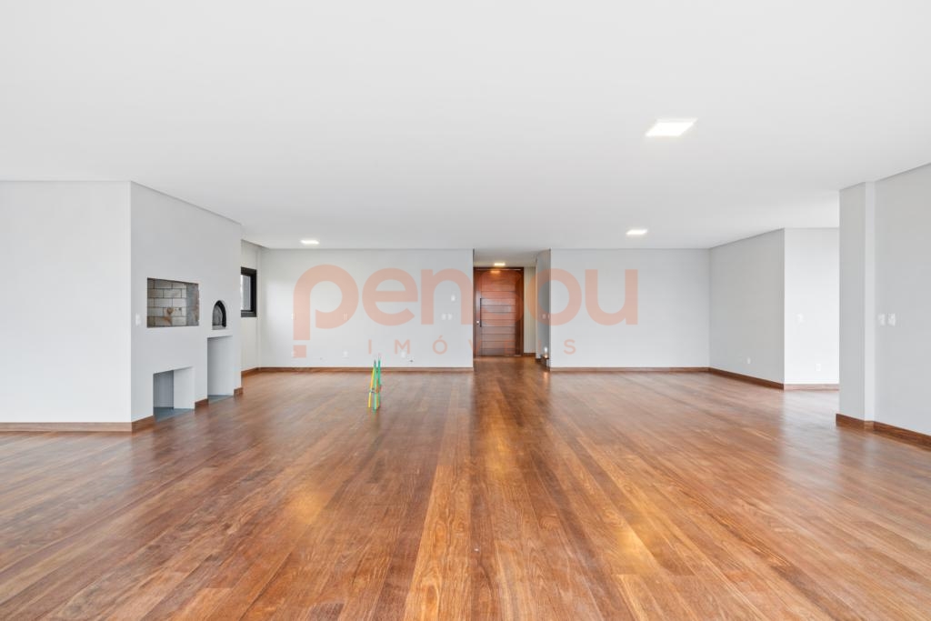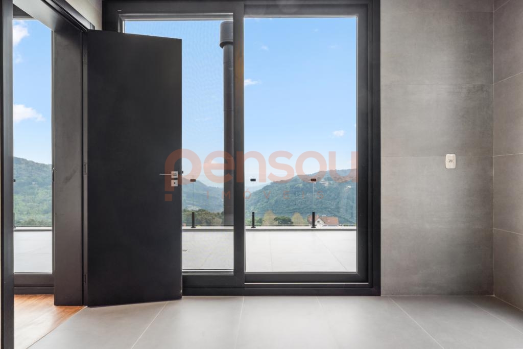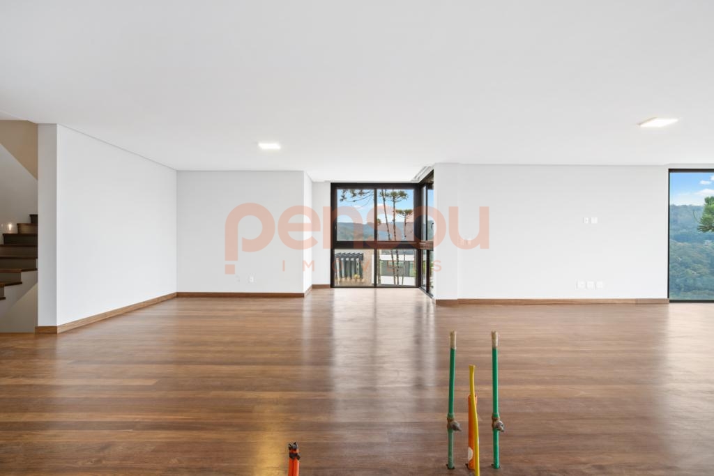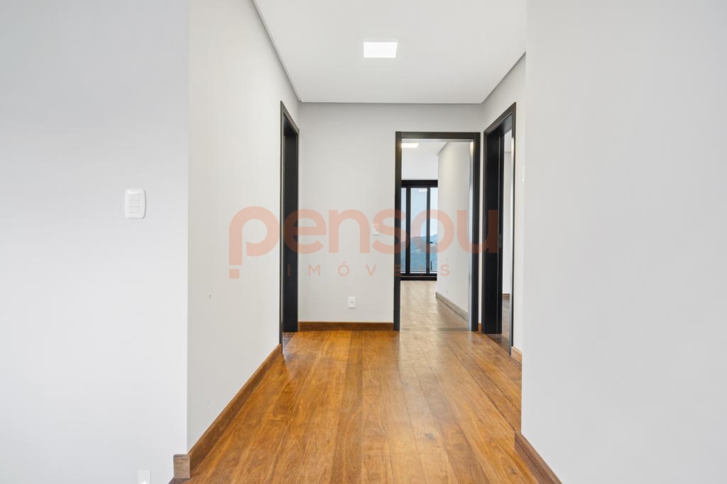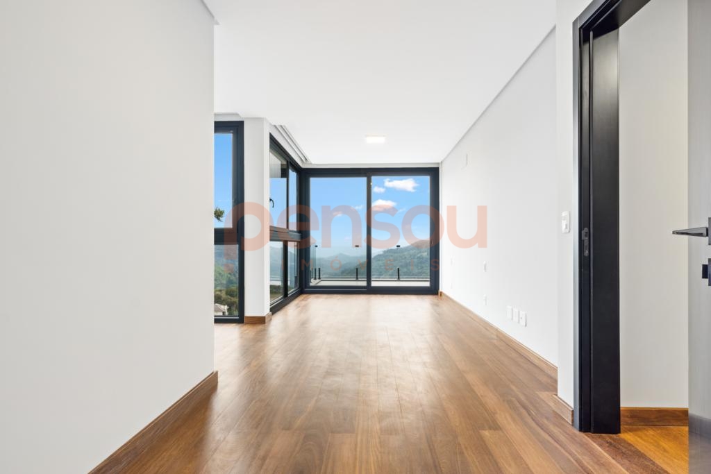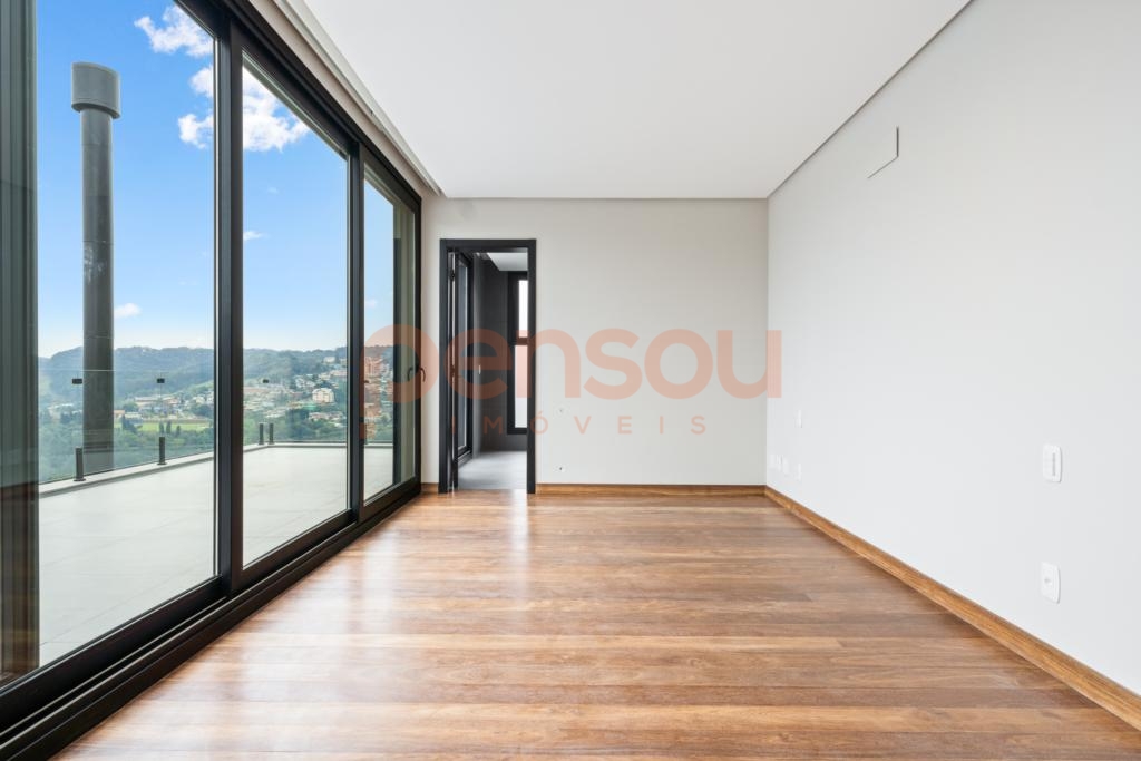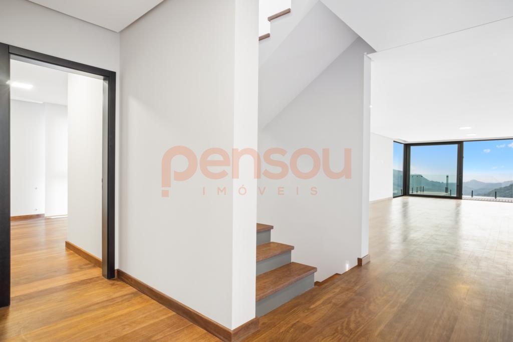 O grande destaque fica por conta do deck com piscina de borda infinita e vista panorâmica, além da lareira externa que proporciona momentos únicos ao pôr do sol. Paisagismo completo e quatro vagas de garagem complementam o imóvel.